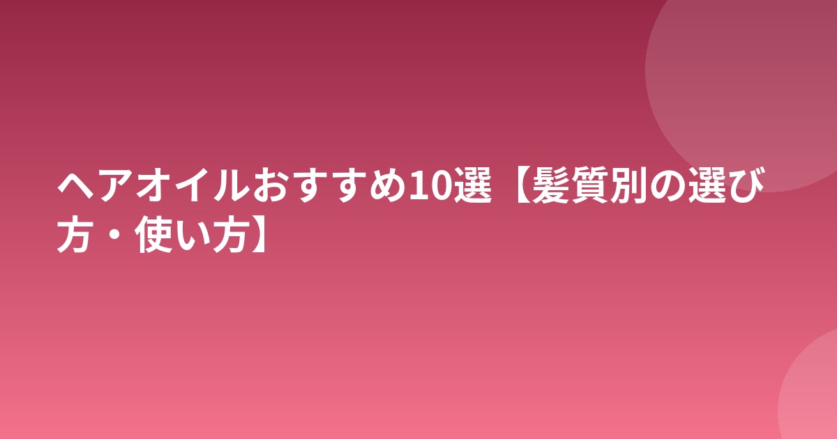 ヘアオイルおすすめ10選【髪質別の選び方・使い方】