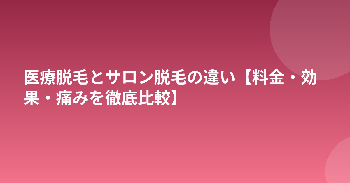 | 項目 | 医療脱毛 | サロン脱毛 |