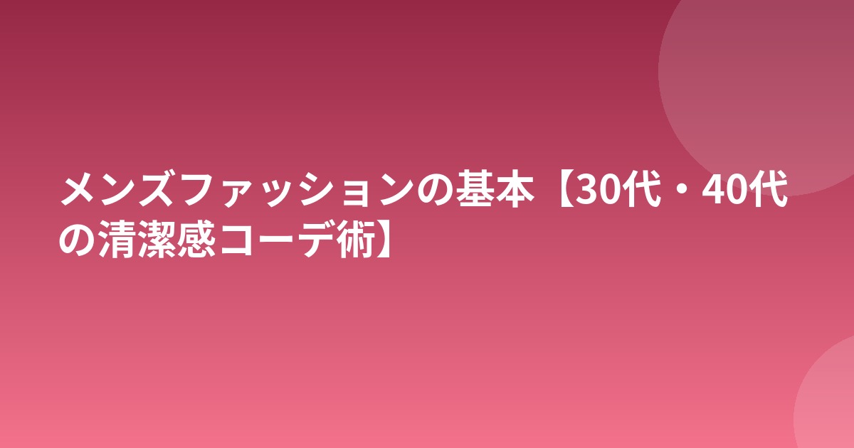 おしゃれの前にまず必要なのが「清潔感」です。清潔感とは単に服を洗濯しているということではなく、サイズ感・色使い・素材の統一感など全体のバランスが整っている状態を指します。30代以降は年齢に合った落ち着きと品のあるスタイルが好印象につながります。