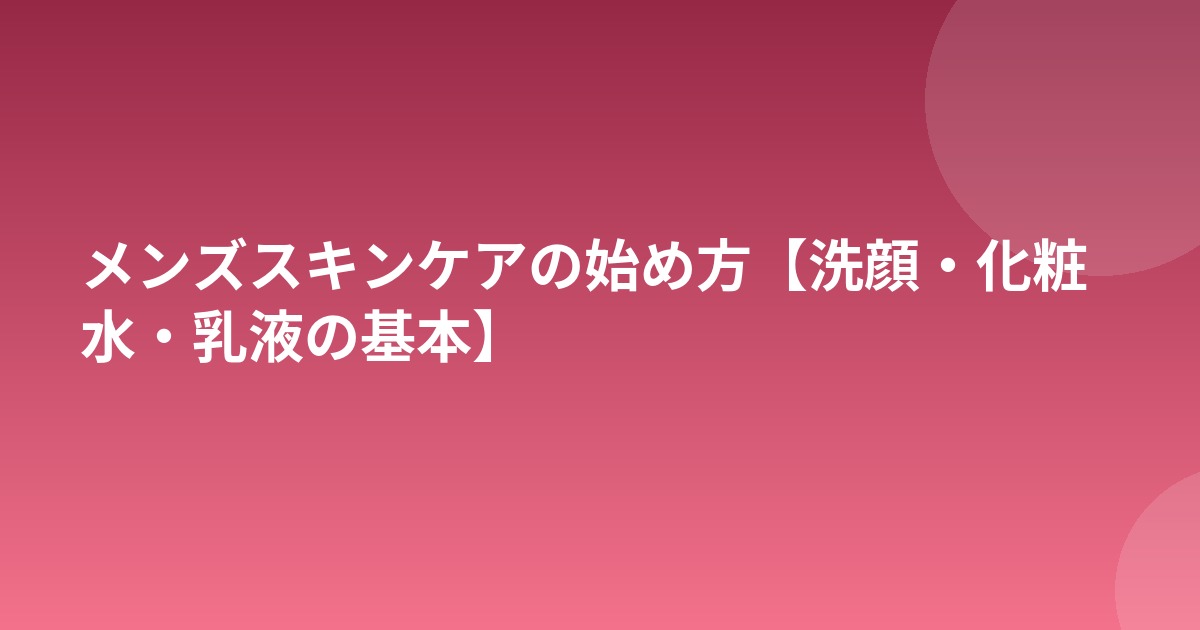 メンズスキンケアの始め方【洗顔・化粧水・乳液の基本】
