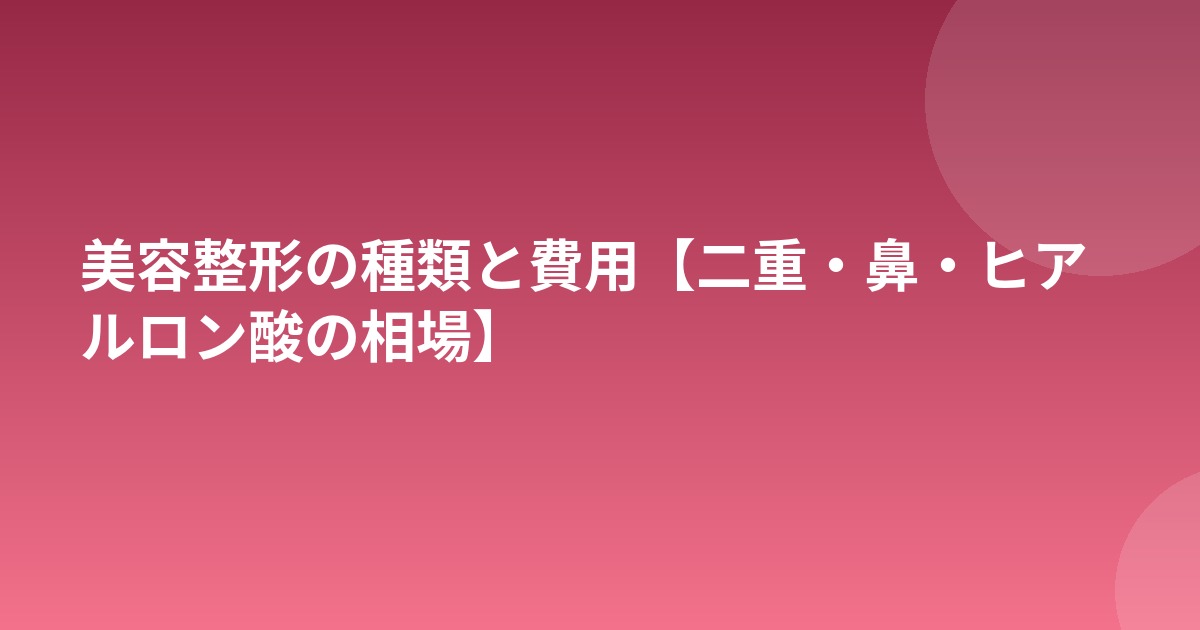 美容整形はメスを使う手術から注射で完了するプチ整形まで幅広い選択肢があります。以下に代表的な施術と費用相場をまとめました。