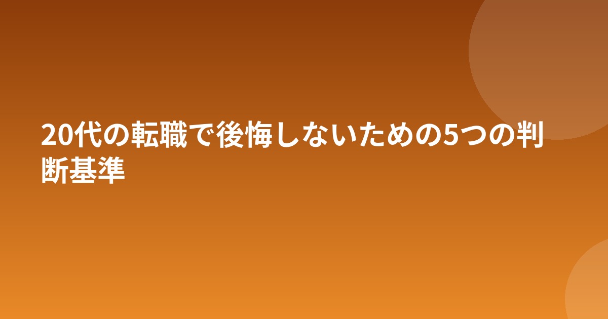 20代で転職した人のなかには「もっとよく考えればよかった」と後悔する人もいます。後悔の多くは、判断基準があいまいなまま転職を決めてしまうことが原因です。