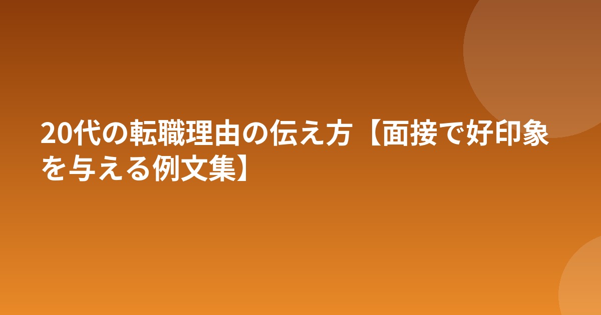 転職面接において、転職理由は必ず聞かれる質問です。特に20代の場合、面接官は「またすぐに辞めてしまわないか」「仕事に対する考え方が甘くないか」という視点でチェックしています。転職理由の伝え方ひとつで、面接の合否が大きく左右されるのです。