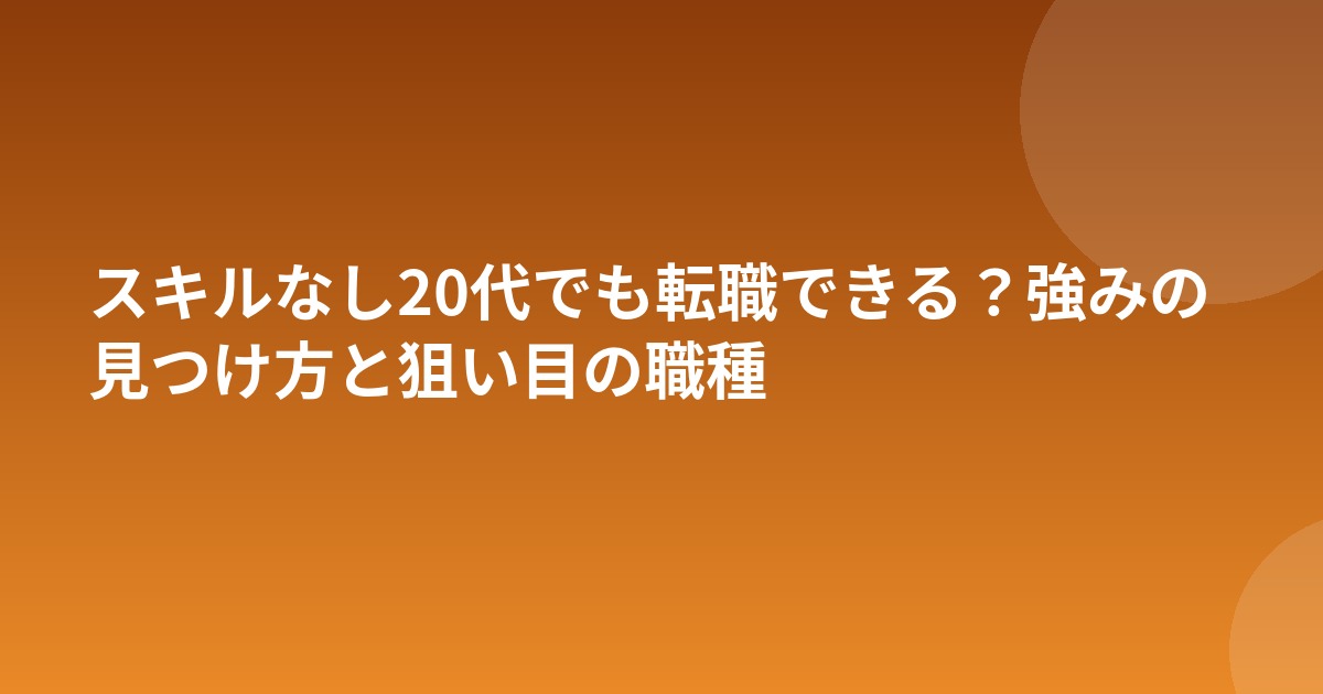 20代のうちは「今あるスキル」よりも「これから伸びる可能性」が評価されます。スキルがないことを理由に転職を諦める必要はありません。まずは自分の強みを整理し、成長できる環境を見つけることに集中しましょう。行動した人だけがキャリアを変えられます。