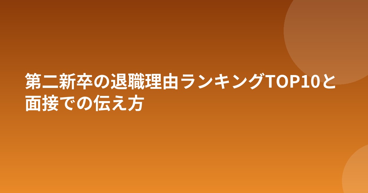 第二新卒として転職活動をする際、面接で必ず聞かれるのが「前職の退職理由」です。まずは実際に多い退職理由を確認し、自分の状況を客観的に整理しましょう。
