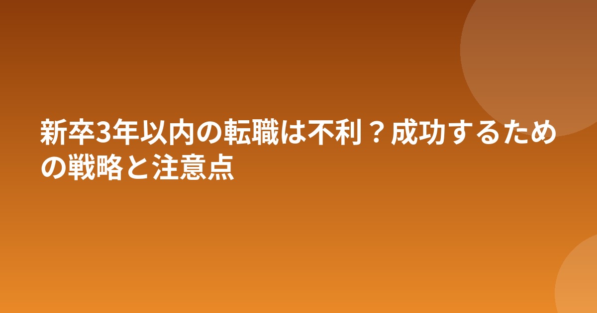 「石の上にも三年」という言葉が根強く残る日本では、新卒3年以内の転職にネガティブなイメージを持つ方も多いでしょう。しかし、実際のデータを見ると、新卒3年以内の離職率は約30%に達しており、決して少数派ではありません。