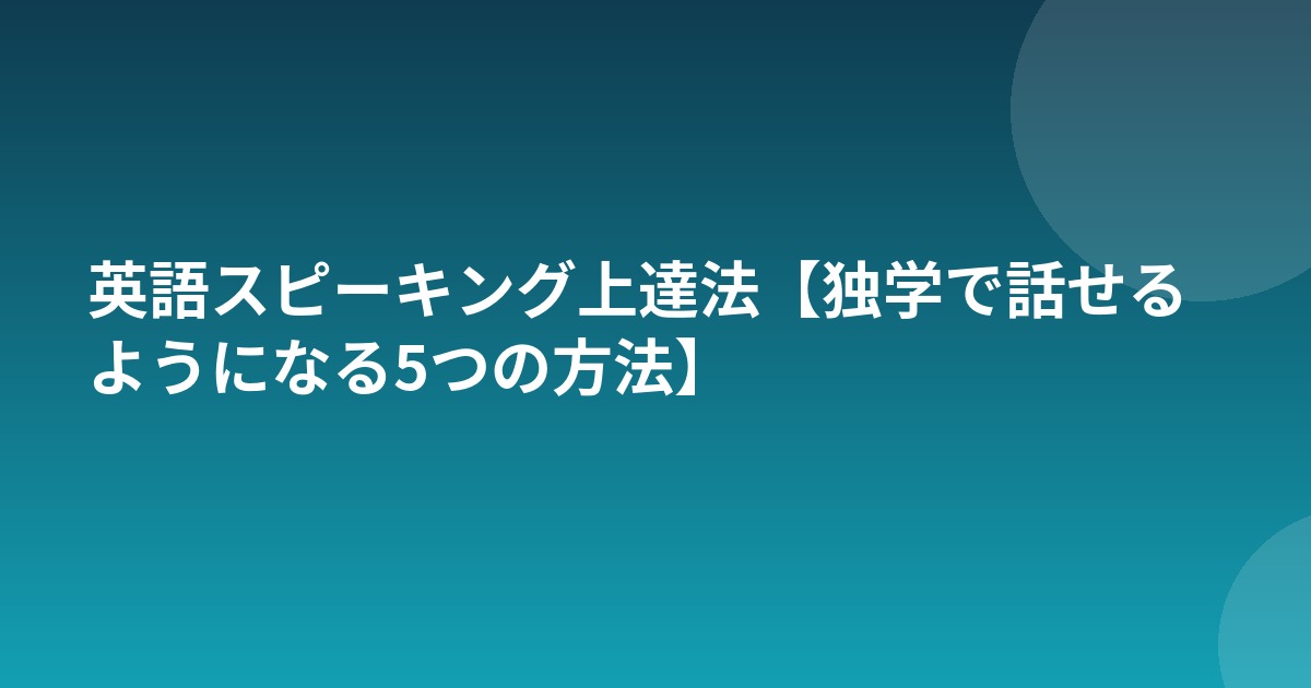 独学で話せるようになる5つのスピーキング練習法