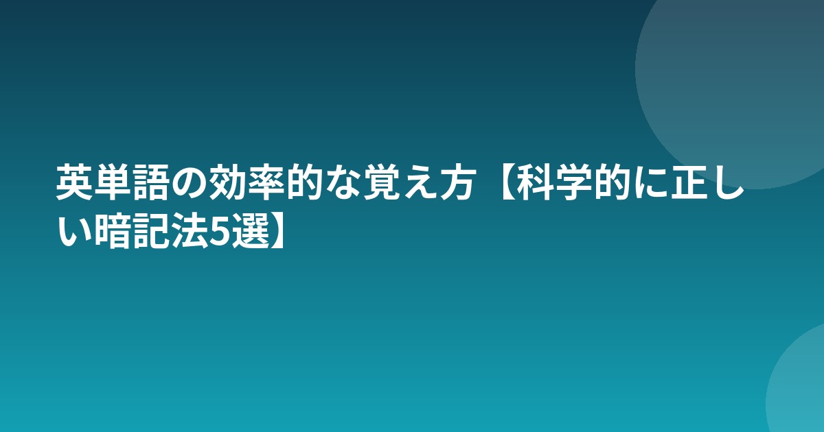 科学的に正しい英単語暗記法5選