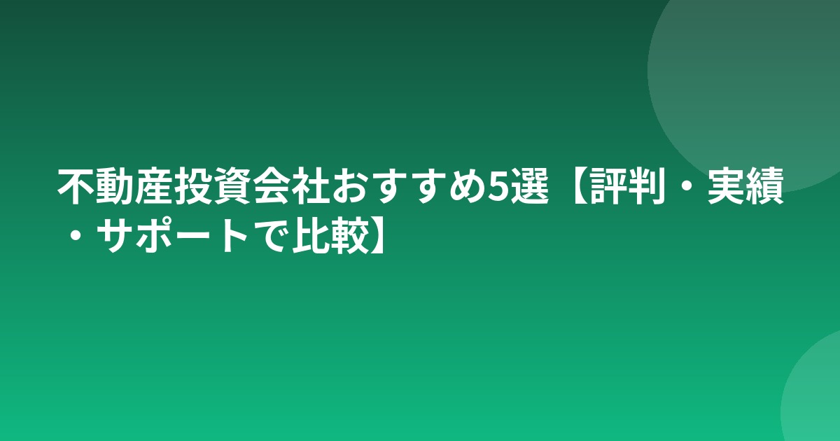 おすすめ不動産投資会社5選