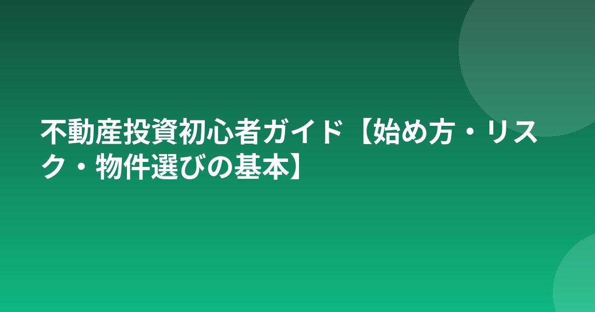 不動産投資初心者ガイド【始め方・リスク・物件選びの基本】