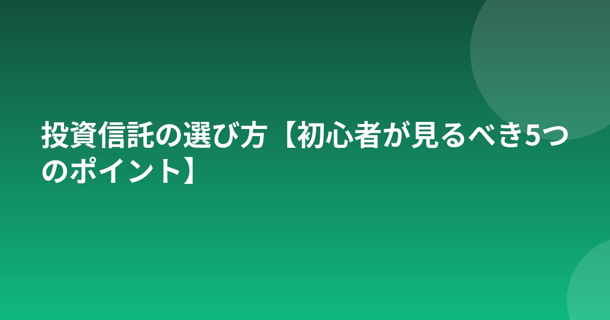 投資信託選びは「低コスト・分散・長期」が基本です。迷ったら、全世界株式または米国株式のインデックスファンドで信託報酬が年0.2%以下のものを選べば、初心者でも堅実な資産形成をスタートできます。NISAの非課税枠を最大限活用しましょう。