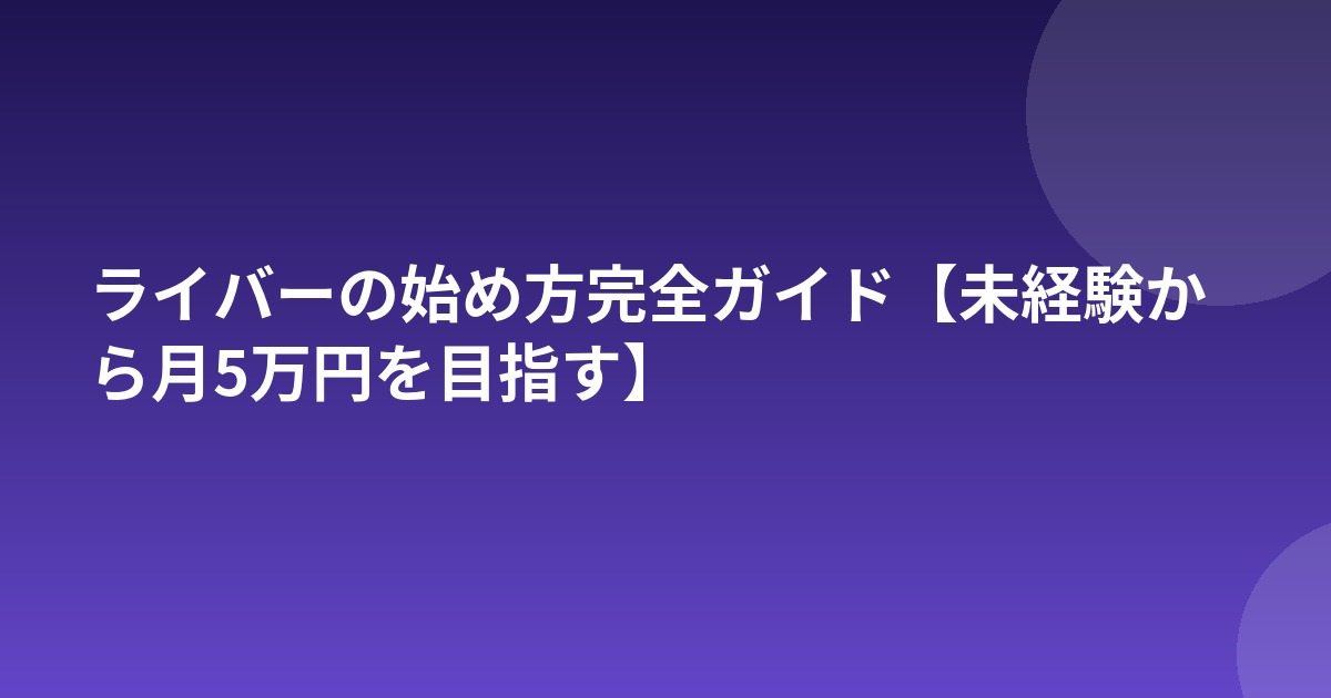 ライバー(ライブ配信者)は自宅にいながら収入を得られる副業として人気が高まっています。未経験から始める方法を解説します。