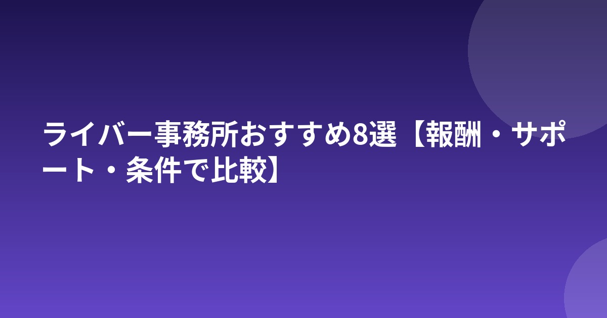 ライバー事務所に所属すると、配信のノウハウ・機材サポート・報酬の底上げが受けられます。この記事では主要8事務所を比較します。
