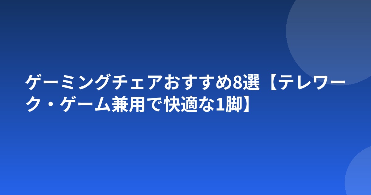 ゲーミングチェアおすすめ8選【テレワーク・ゲーム兼用で快適な1脚】