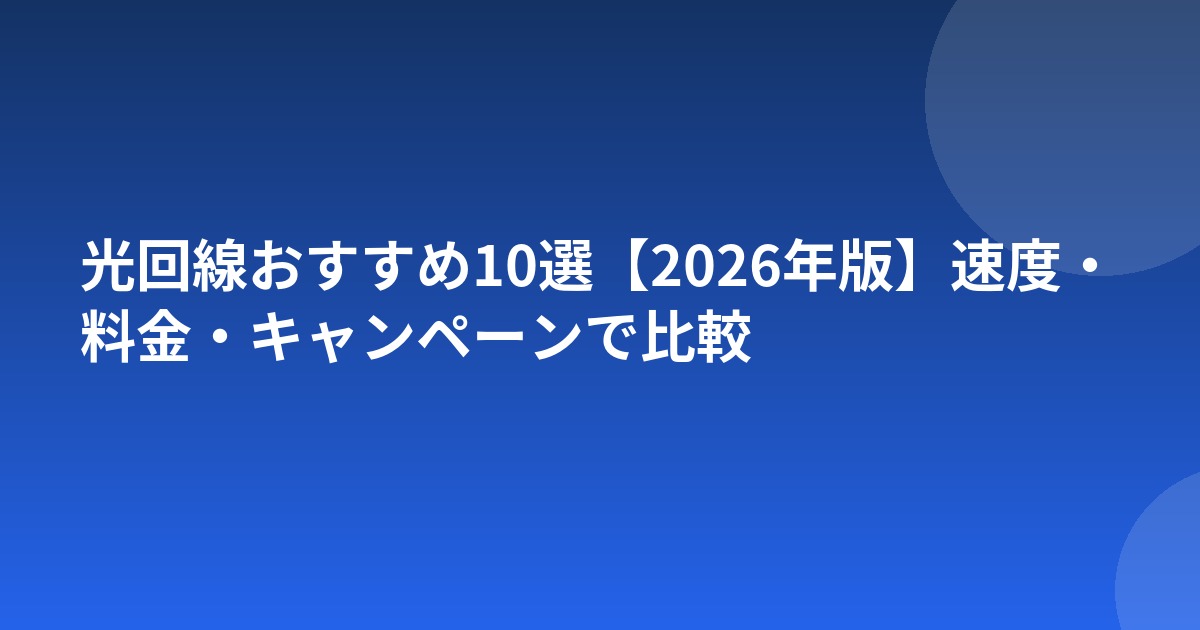 光回線おすすめ10選【2026年版】速度・料金・キャンペーンで比較