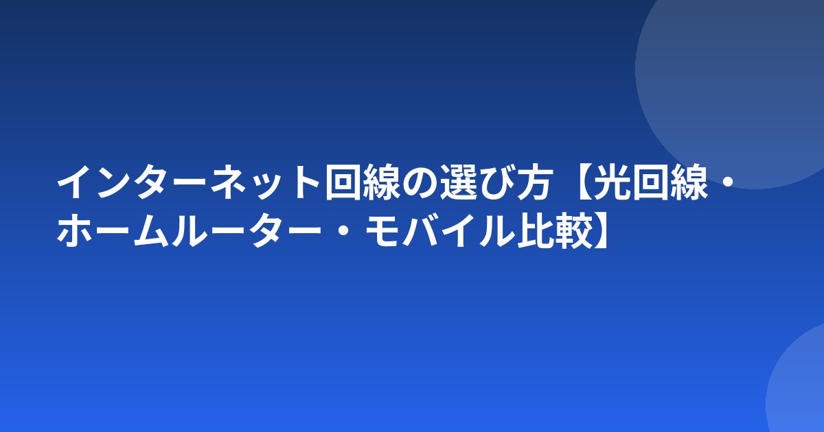 インターネット回線の選び方【光回線・ホームルーター・モバイル比較】