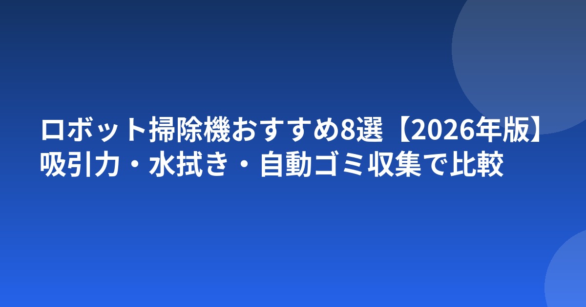 ロボット掃除機おすすめ8選【2026年版】吸引力・水拭き・自動ゴミ収集で比較