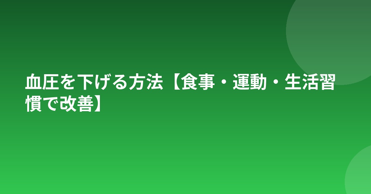 血圧を下げる方法【食事・運動・生活習慣で改善】
