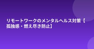 リモートワークのメンタルヘルス対策【孤独感・燃え尽き防止】