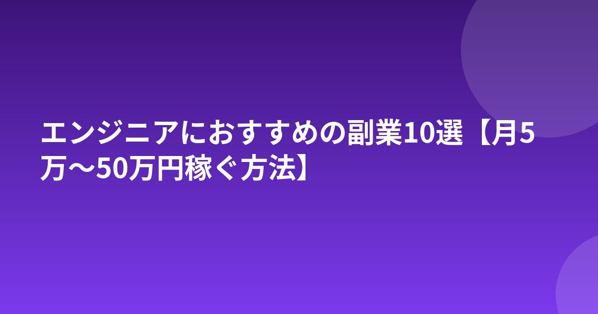エンジニアにおすすめの副業10選【月5万〜50万円稼ぐ方法】