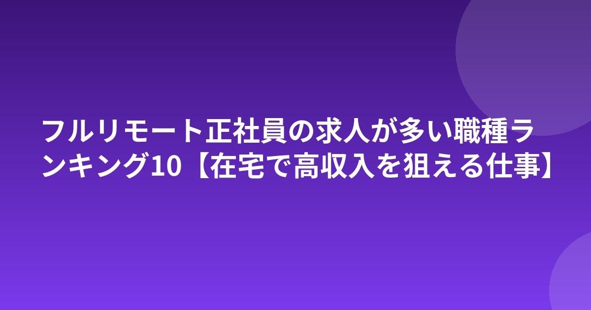 「フルリモートで正社員として働きたい」——コロナ以降、リモートワークは定着しましたが、フルリモート正社員の求人はまだ限られています。この記事ではフルリモート率が高い職種をランキングで紹介します。