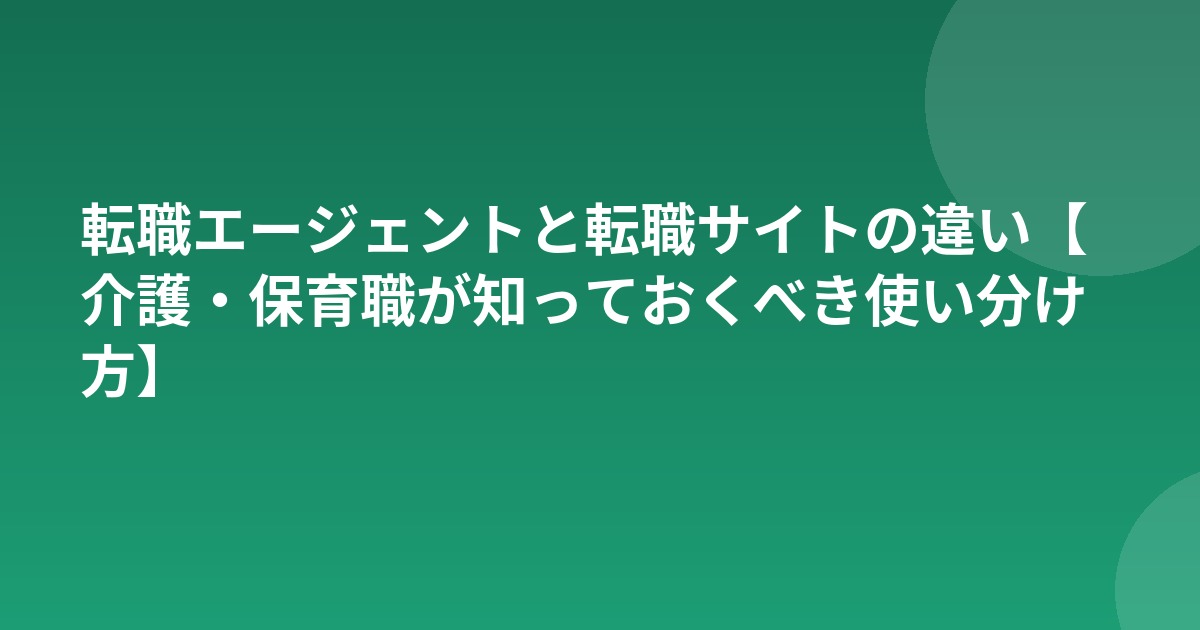 結論から言うと、介護・保育からの転職には転職エージェントを活用することを強くおすすめします。 ただし、転職サイトにも活用すべき場面があります。