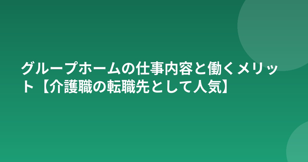 少人数の環境で丁寧なケアをしたい方にとって、グループホームは理想的な職場といえるでしょう。