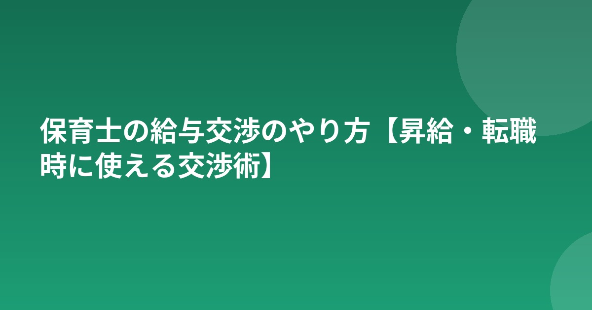 保育士の給与交渉のやり方【昇給・転職時に使える交渉術】