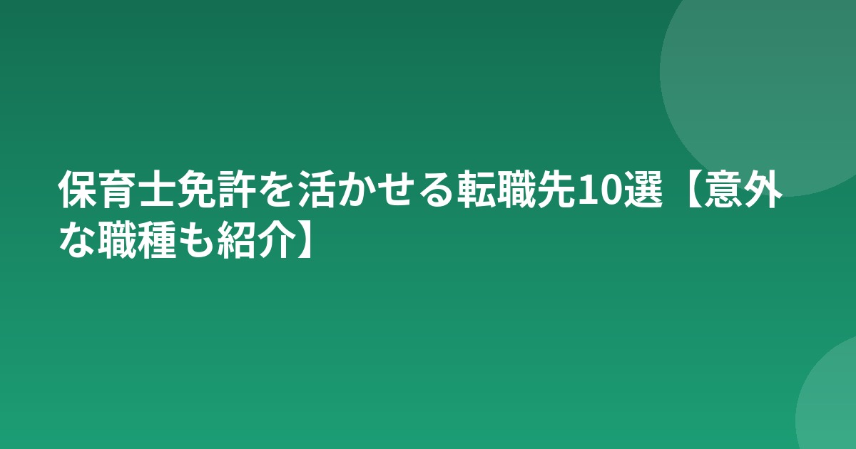 保育士の資格と経験は、保育園以外の多くの場所で価値を発揮します。「保育園以外では働けない」と思い込まず、自分のスキルと希望に合った職場を探してみましょう。転職エージェントに相談すると、意外な選択肢に気づけることもあります。