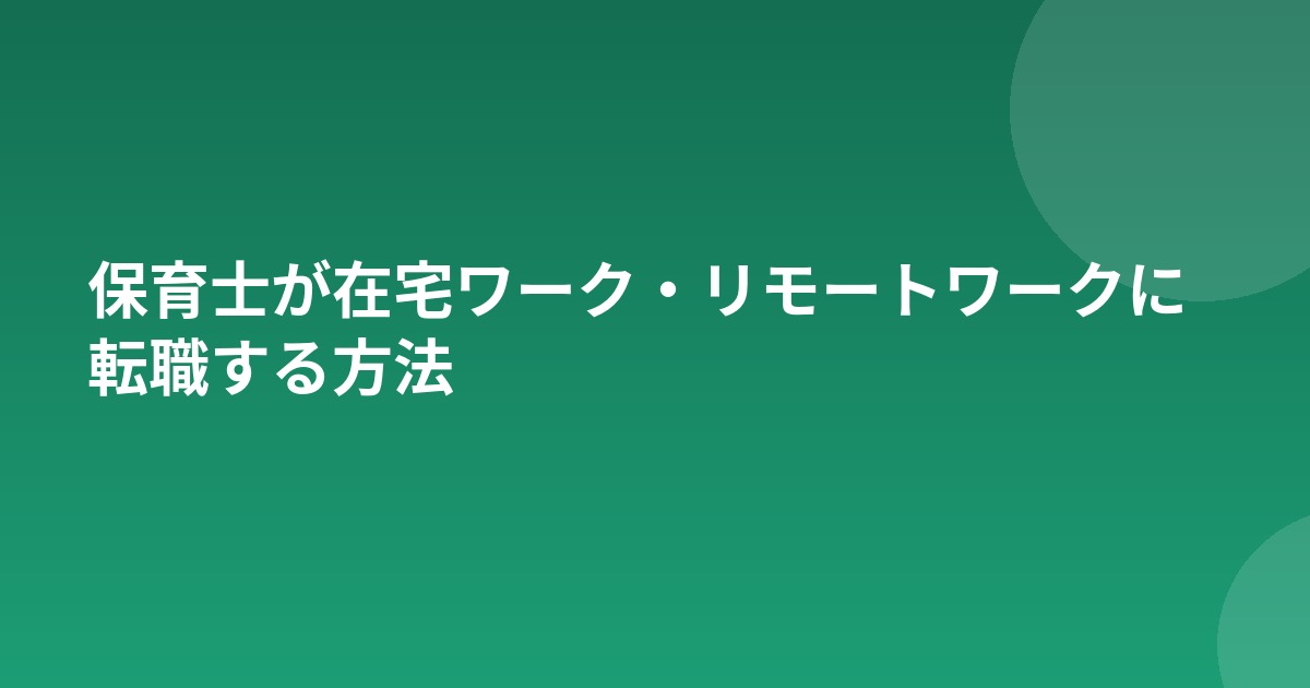 「保育士の仕事を離れてリモートで働きたい」「育児と両立できる仕事に転職したい」という保育士の方に向けて、在宅ワーク・リモートワークへの転職方法を解説します。