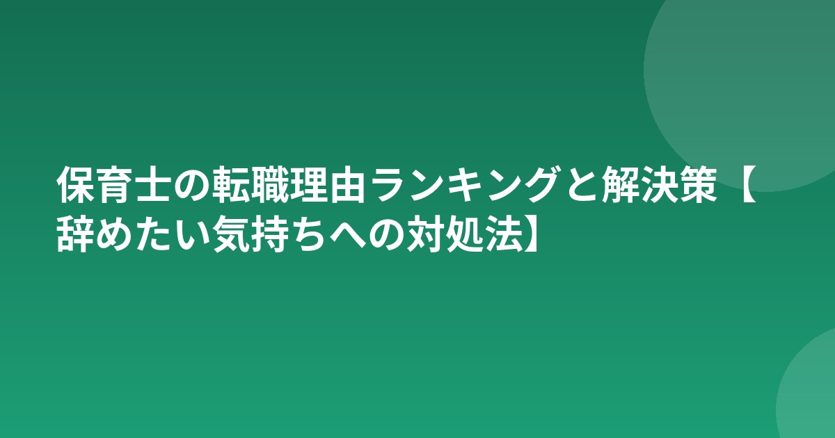 保育士の離職率は年々改善されつつありますが、依然として高い水準にあります。本記事では保育士が転職を考える主な理由と、それぞれの解決策を詳しく解説します。