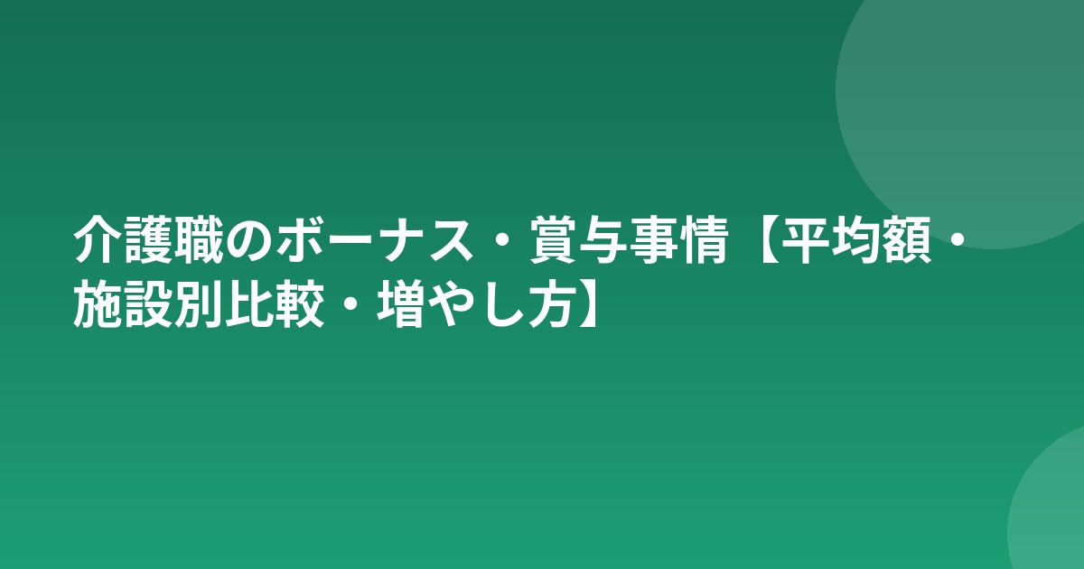 厚生労働省の賃金構造基本統計調査によると、介護士(施設介護員)の年間賞与平均は約40〜60万円です。月給ベースでは約1〜2カ月分に相当します。