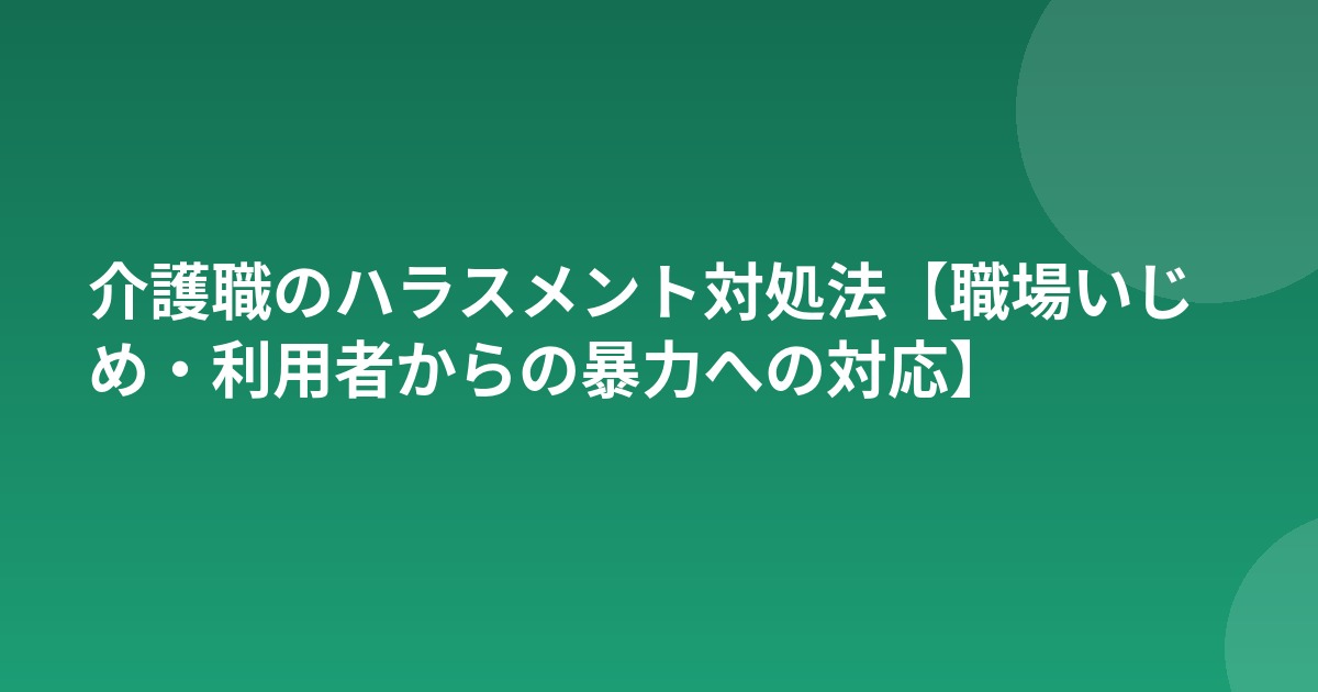 介護職のハラスメント対処法【職場いじめ・利用者からの暴力への対応】