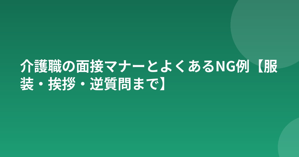 「面接で何を聞かれるか」以上に大切なのが、面接当日のマナーです。清潔感・礼儀・態度は介護職の適性判断にも直結します。この記事では押さえるべき基本マナーとNGポイントをまとめました。