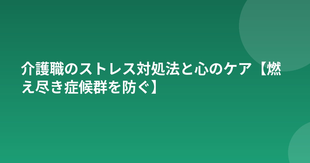 介護職のストレス対処法と心のケア【燃え尽き症候群を防ぐ】