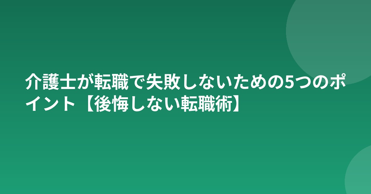 介護士が転職で失敗しないための5つのポイント【後悔しない転職術】