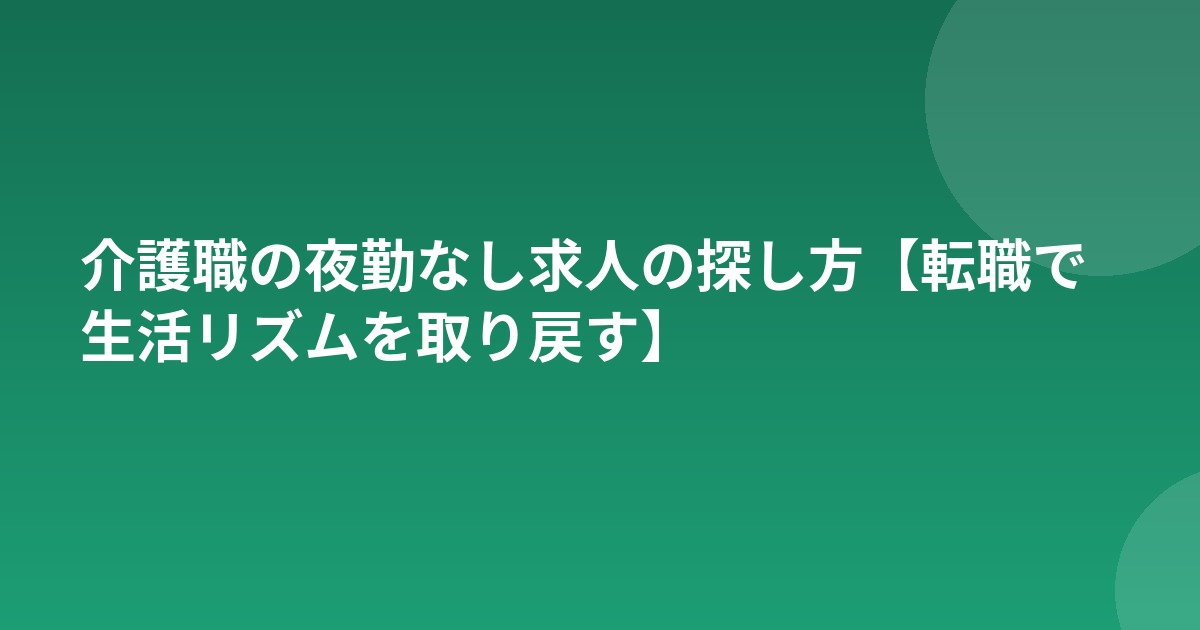 介護職の夜勤なし求人の探し方【転職で生活リズムを取り戻す】