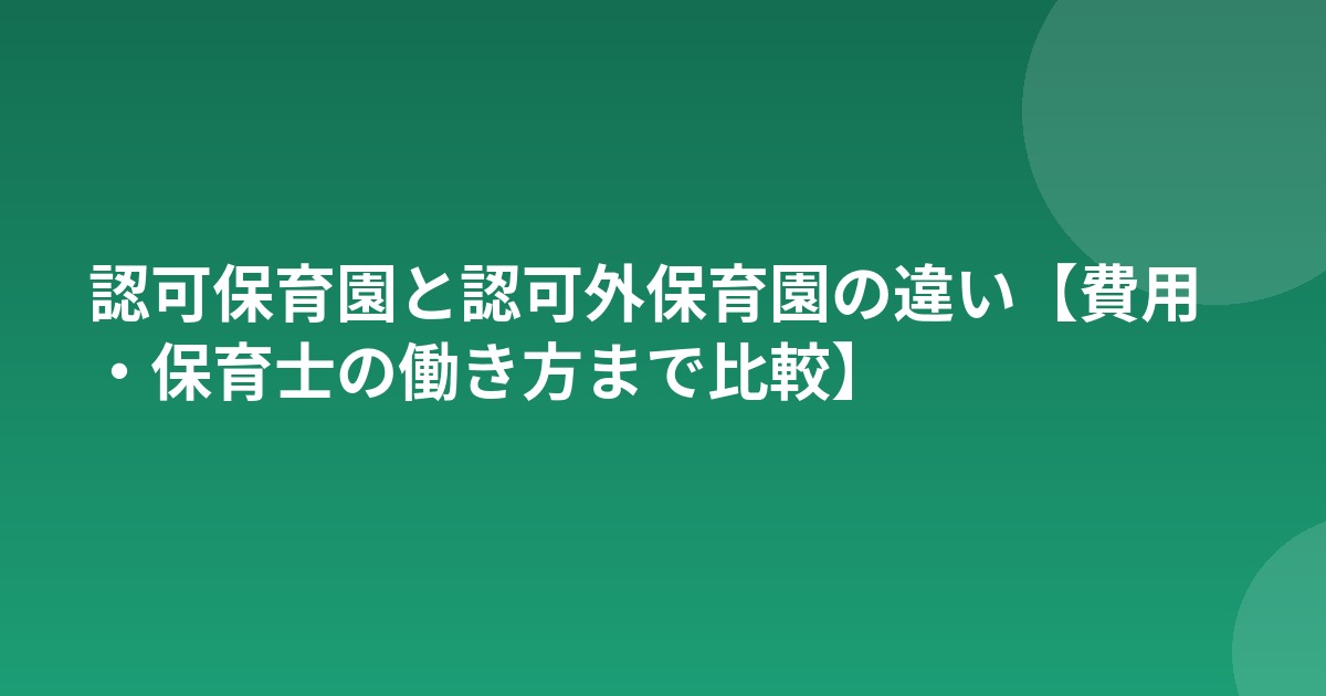 認可保育園と認可外保育園の違い【費用・保育士の働き方まで比較】