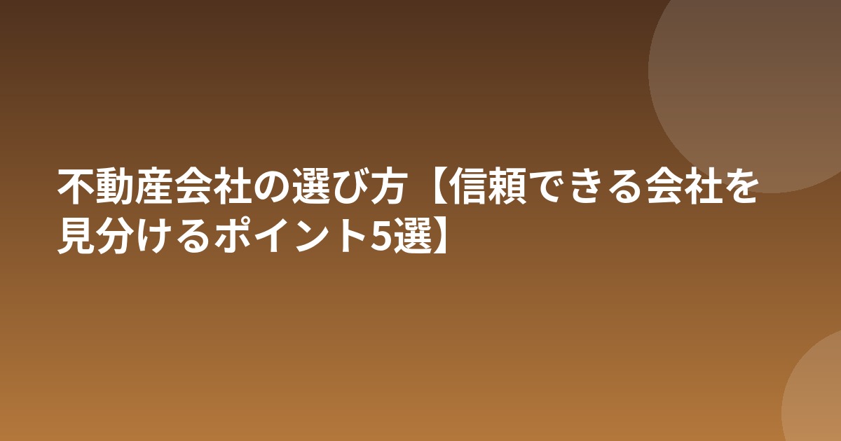 不動産会社選びは住まい探しの最初の重要なステップです。免許の確認・対応の質・口コミ・手数料の透明性をしっかりチェックして、信頼できるパートナーを見つけましょう。複数の会社を比較することで、より良い選択ができます。