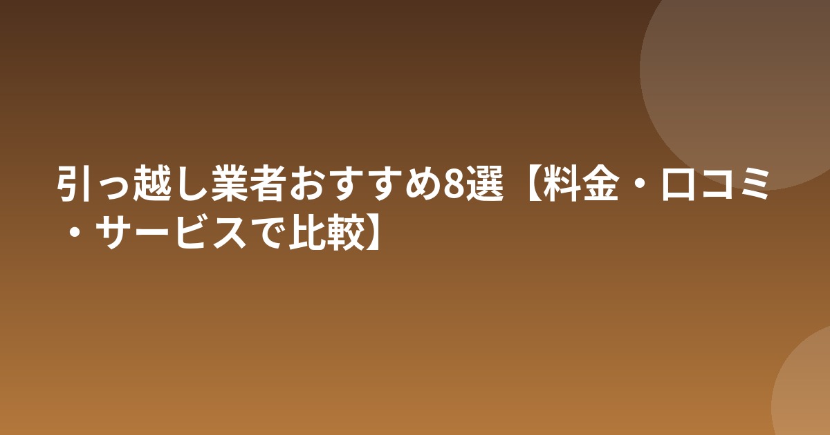 おすすめ引っ越し業者8選
