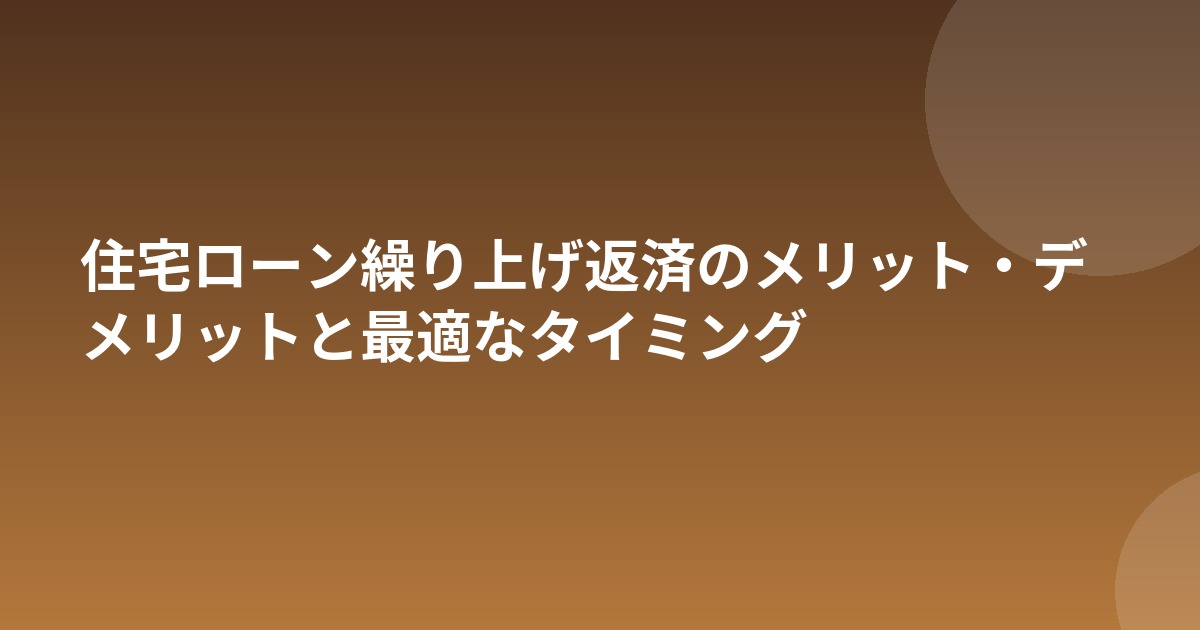 住宅ローン繰り上げ返済のメリット・デメリットと最適なタイミング