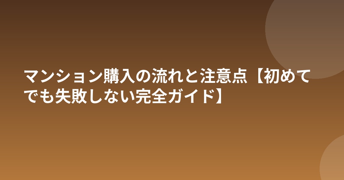 マンション購入の流れと注意点【初めてでも失敗しない完全ガイド】