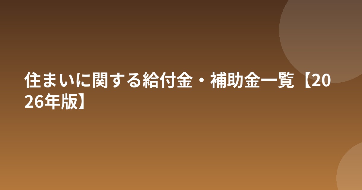 住宅の購入やリフォームには大きな費用がかかりますが、国や自治体が提供する給付金・補助金制度を活用することで、負担を大幅に軽減できます。本記事では2026年時点で利用可能な主要な支援制度を一覧にまとめました。