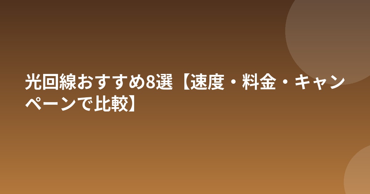 おすすめ光回線8選【2026年版】