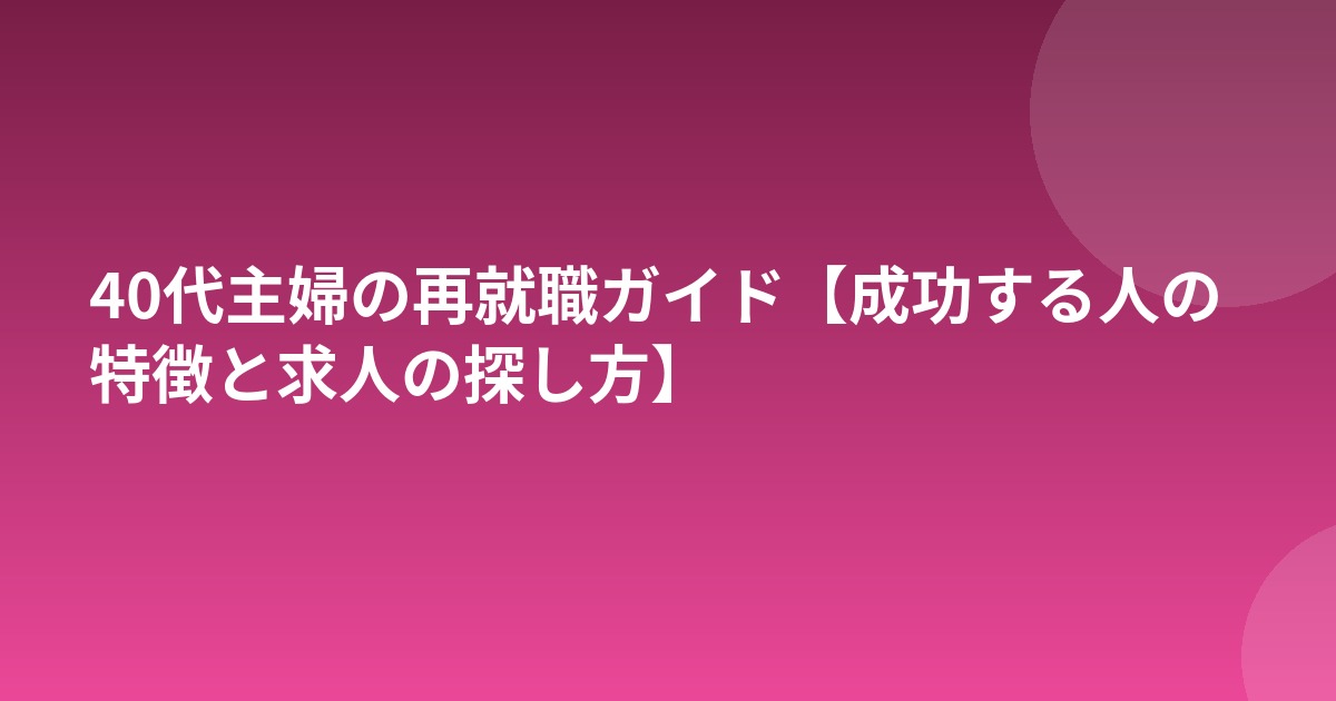 40代主婦の再就職ガイド【成功する人の特徴と求人の探し方】