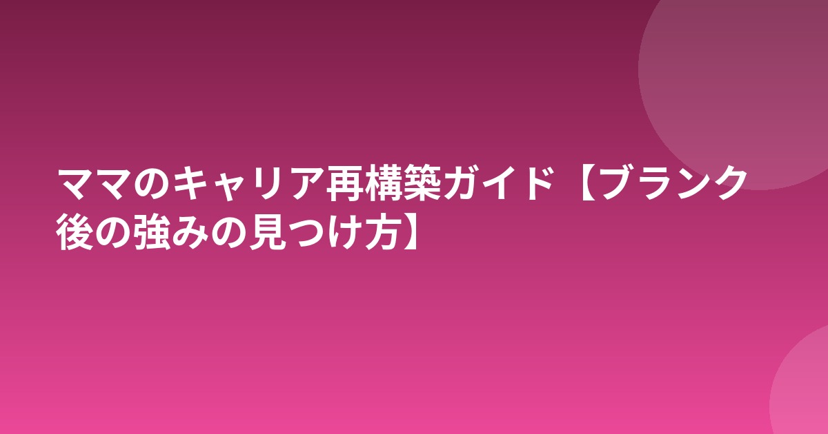 ブランクは「空白」ではなく「成長期間」です。子育てで培ったスキルを言語化し、自信を持ってキャリアを再構築しましょう。