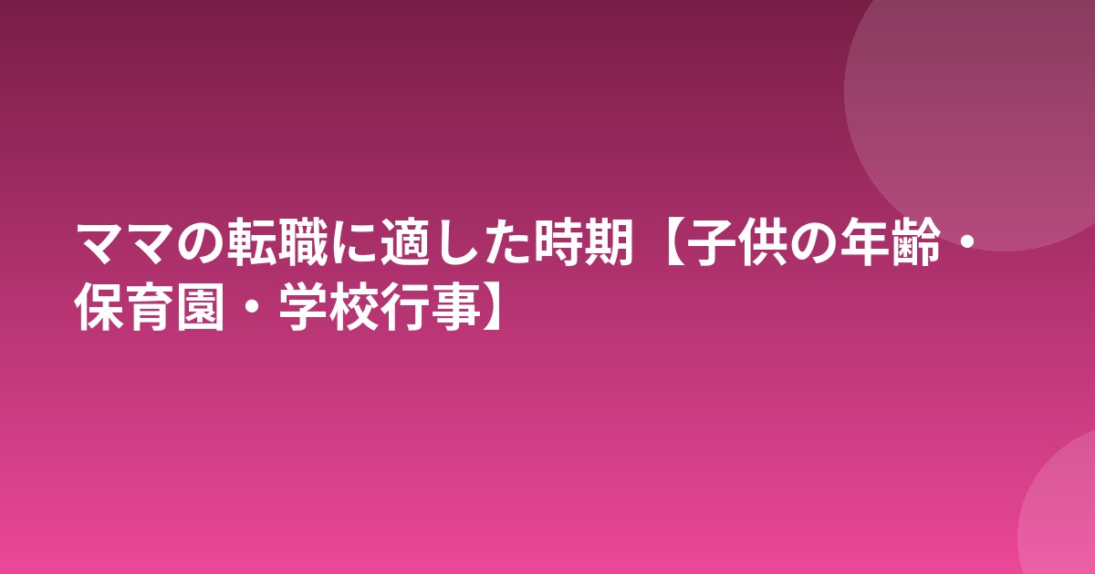 ママの転職は、家庭の状況や子供の成長段階によって適したタイミングが異なります。子供の年齢やライフイベントを考慮しながら、無理のないスケジュールで転職活動を進めることが重要です。