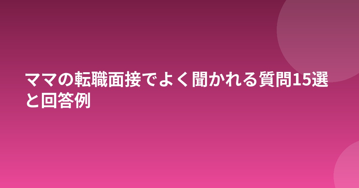 子育て中のママが転職活動をする際、面接では一般的な質問に加えて、育児との両立に関する質問をされることが多くあります。事前に想定質問を把握し、回答を準備しておくことで、落ち着いて面接に臨めます。
