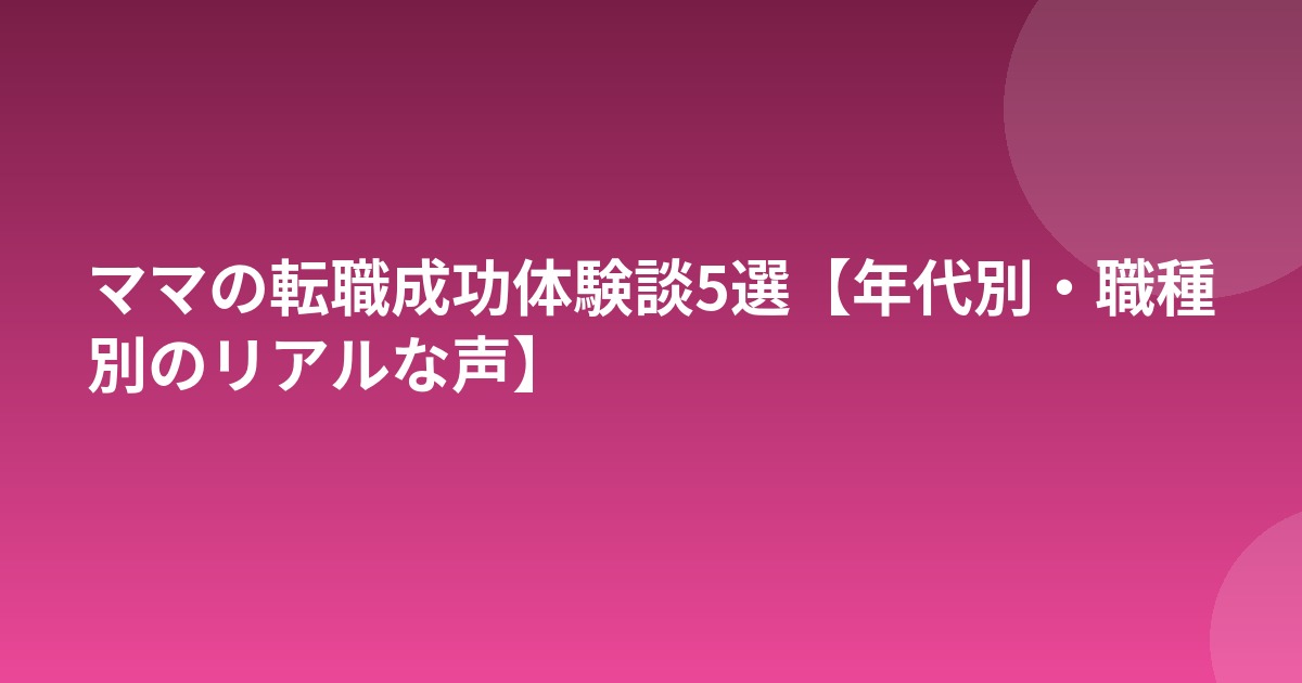 実際に転職を成功させたママたちの体験談は、これから転職を考える方にとって貴重な参考情報です。年代や職種が異なる5人のリアルな声を紹介します。