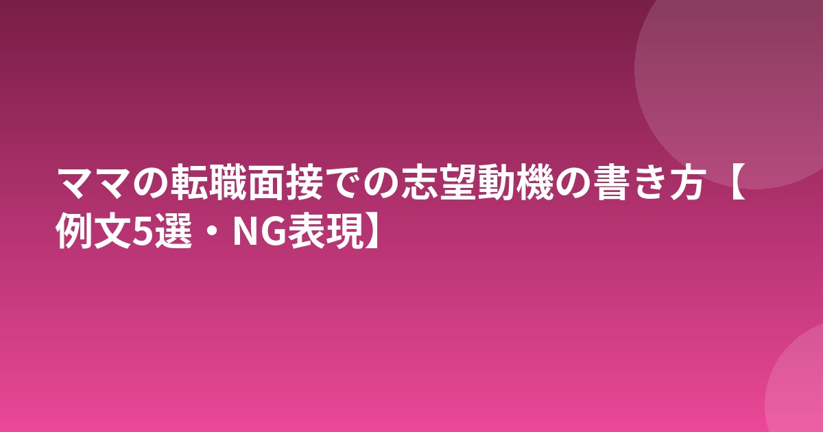 子育て中のママが転職する際、志望動機は合否を左右する最も重要な要素のひとつです。面接官は「なぜ転職したいのか」「なぜ当社なのか」「長く働いてくれるか」を志望動機から判断します。この記事では、ママならではの志望動機の書き方と具体的な例文を紹介します。